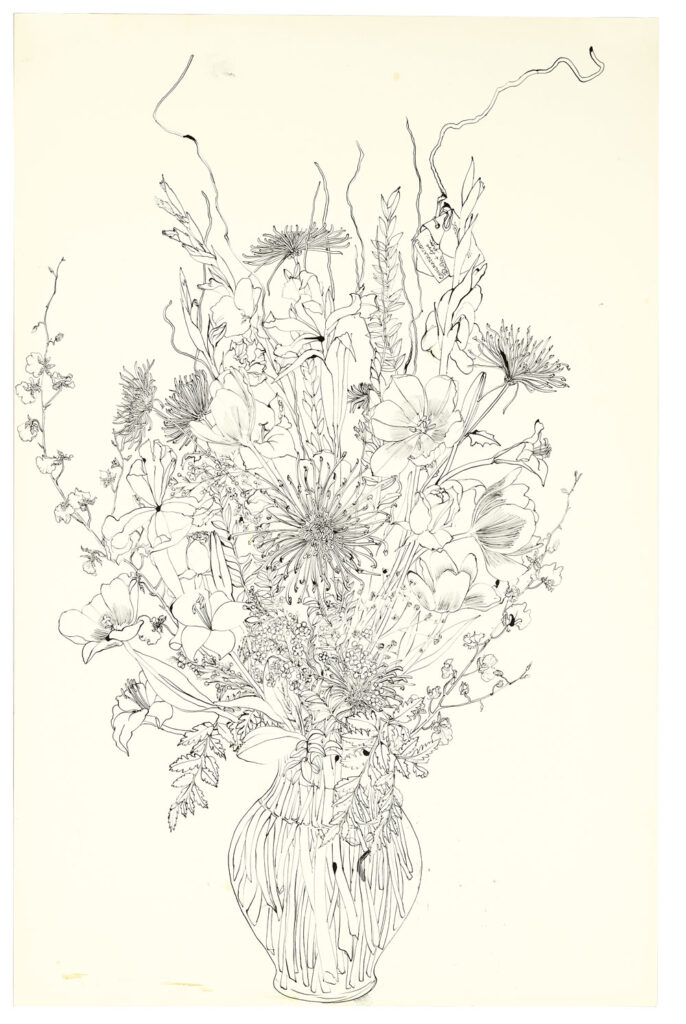 A gallery that evokes the living room of Asawa’s longtime Noe Valley home opens with the artist’s hand-carved redwood doors, and features cases of her sketchbooks, art by friends that she kept on display, and a rich array of the sculptures that once hung from her ceiling. Archival materials show how Asawa shaped her adopted hometown through numerous public commissions and her dedication to arts education.